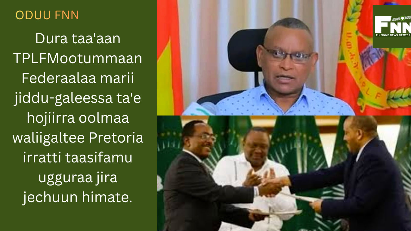 Dura taa'aan TPLFMootummaan Federaalaa marii jiddu-galeessa ta'e hojiirra oolmaa waliigaltee Pretoria irratti taasifamu ugguraa jira jechuun himate.