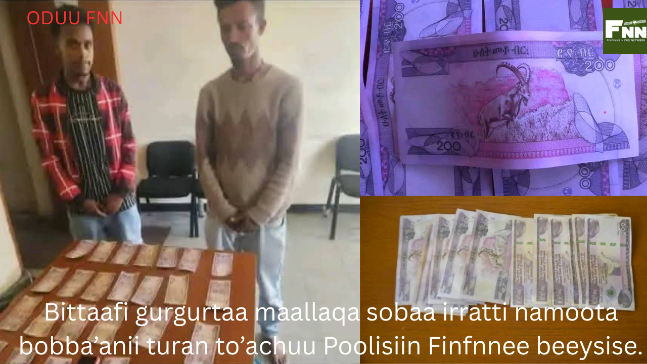 Bittaafi gurgurtaa maallaqa sobaa irratti namoota bobba’anii turan to’achuu Poolisiin Finfnnee beeysise.
