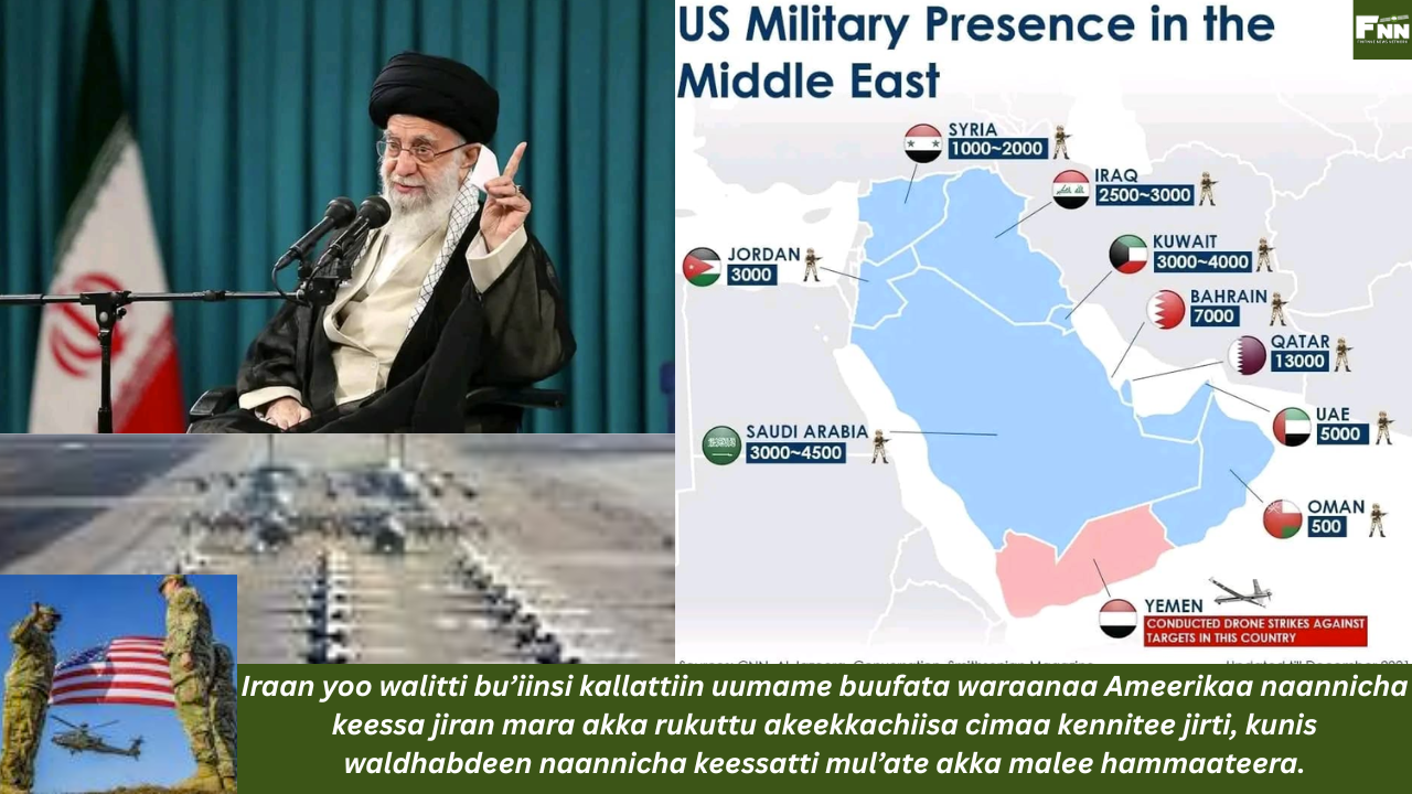 Iraan yoo walitti bu’iinsi kallattiin uumame buufata waraanaa Ameerikaa naannicha keessa jiran mara akka rukuttu akeekkachiisa cimaa kennitee jirti, kunis waldhabdeen naannicha keessatti mul’ate akka malee hammaateera.