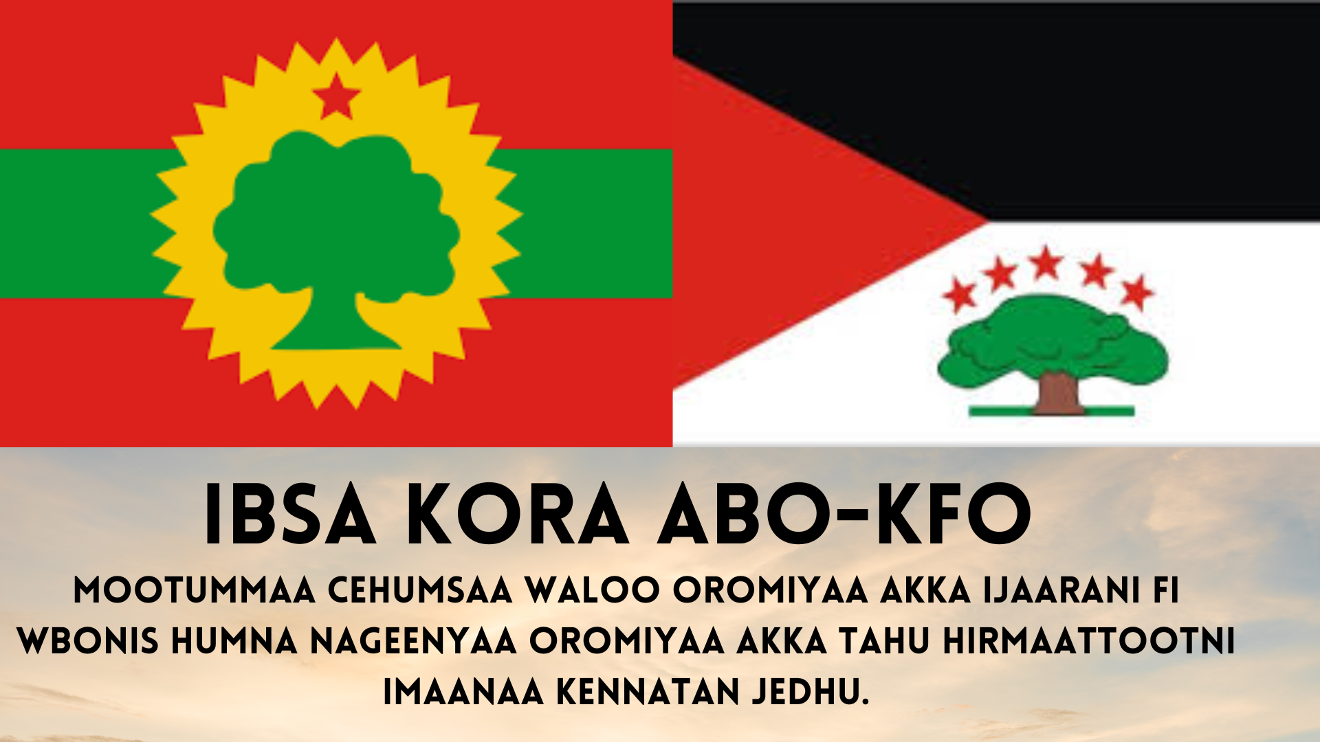 ABO fi KFOn Gurraandhala 19 haga Gurraandhala 22, 2025 itti Hoteela Ililii Finfinnee jirutti kora godhachuun ibsa baasanii xumuran. Ibsa isaanii kana keessatti hirmaattoti imaanaa Mootummaa Cehumsaa Waloo Oromiyaa akka ijaaran kennatan jedha ibsi kun.