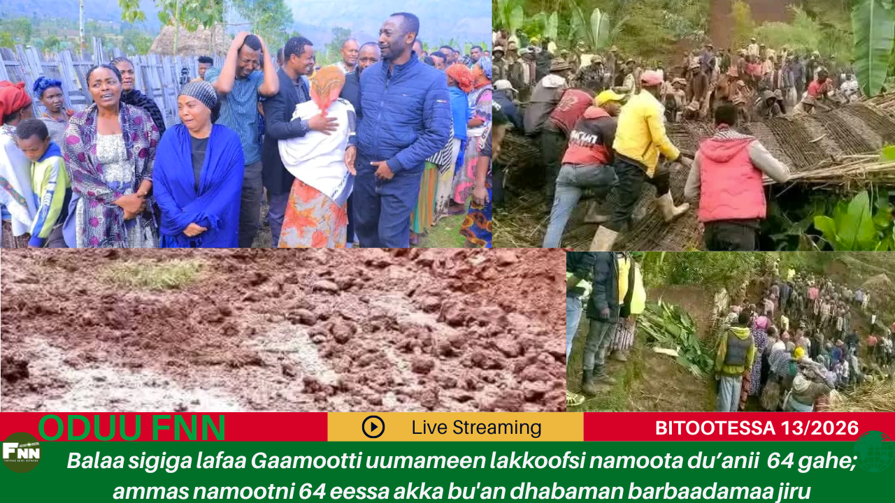 Balaa sigiga lafaa Gaamootti uumameen lakkoofsi namoota du’anii 64 gahe; ammas namootni 64 eessa akka bu'an dhabaman barbaadamaa jiru