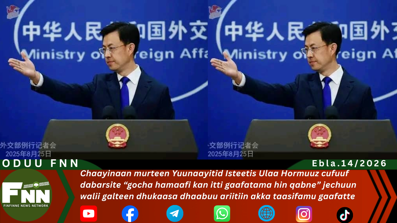Chaayinaan murteen Yuunaayitid Isteetis Ulaa Hormuuz cufuuf dabarsite “gocha hamaafi kan itti gaafatama hin qabne” jechuun walii galteen dhukaasa dhaabuu ariitiin akka taasifamu gaafatte